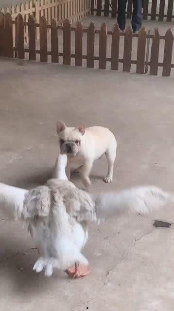 2. 利用体型优势:鹅们会利用自己的体型优势,对狗狗进行压制。